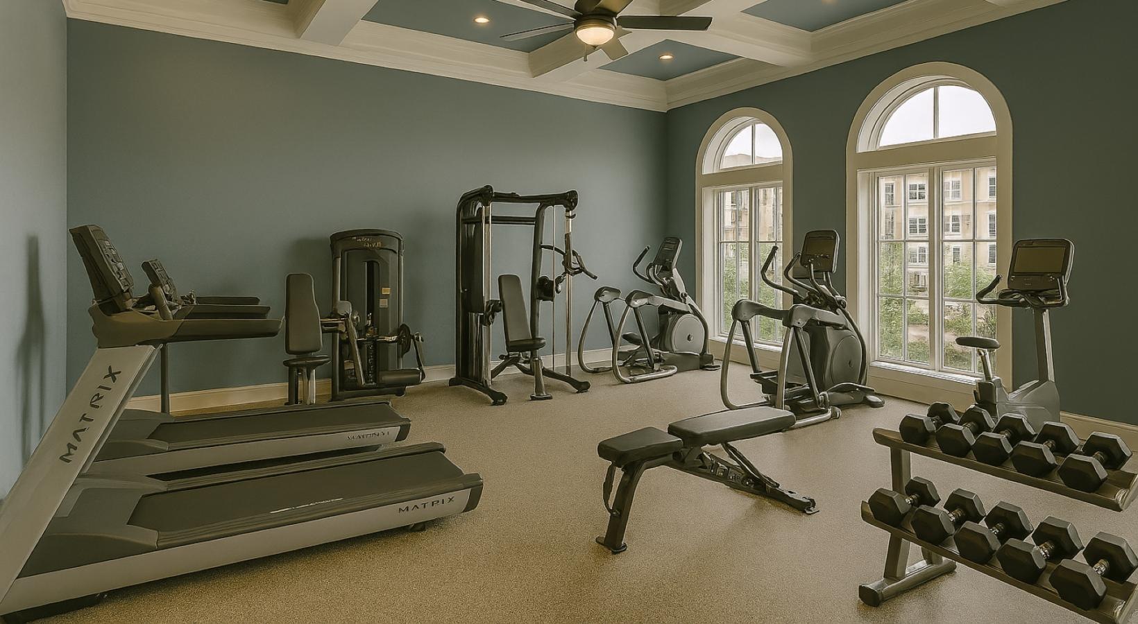 • a gym with exercise equipment